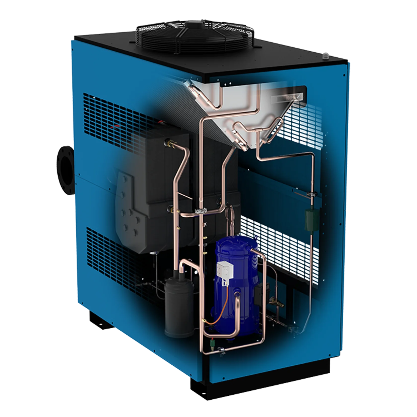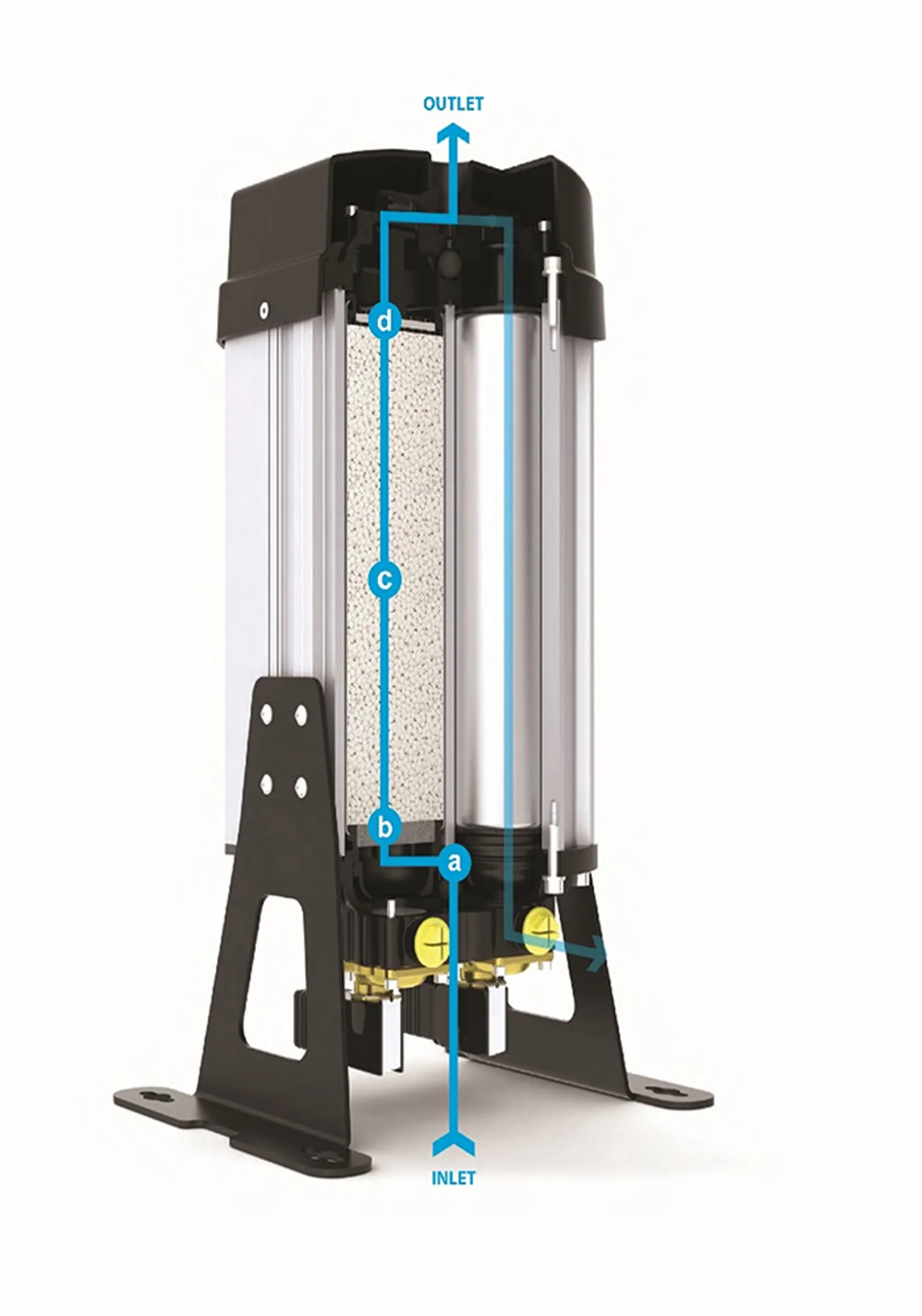 В серии CompAir AX используются двухконтурные осушители воздуха и стратегически расположенные клапаны для осушки сжатого воздуха. Производимый сжатый воздух тщательно высушивается при его подаче через колонну сушилки, заполненную влагопоглотителем. Поскольку осушитель в этой колонне адсорбирует влагу из воздуха, осушитель в автономной колонне сушилки очищается от влаги и готовится к использованию.