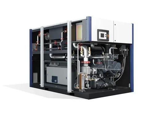 Что это: Безмасляный винтовой компрессор класса Zero Номинальная мощность 37–75 кВт Производительность до 12,7 м³/мин (при 7 бар изб.) Дополняет существующий модельный ряд мощностью от 75 до 315 кВт Модели с фиксированной и регулируемой скоростью (RS) Воздушное и водяное охлаждение Многочисленные дополнительные опции